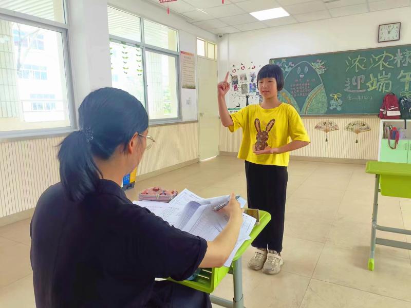 “停車坐愛楓林晚,霜葉紅于二月花。”“牧童騎黃牛,歌聲振林樾。”……一句句耳熟能詳、意韻深遠(yuǎn)的詩句從考室內(nèi)傳出,讓我們仿佛看到了古時私塾內(nèi)的書童正搖頭晃腦地背誦著經(jīng)書。一首首唯美動人、雋永跌宕的古詩在聽障學(xué)生們生動流暢的手語演繹下,再現(xiàn)了許多經(jīng)典畫面。